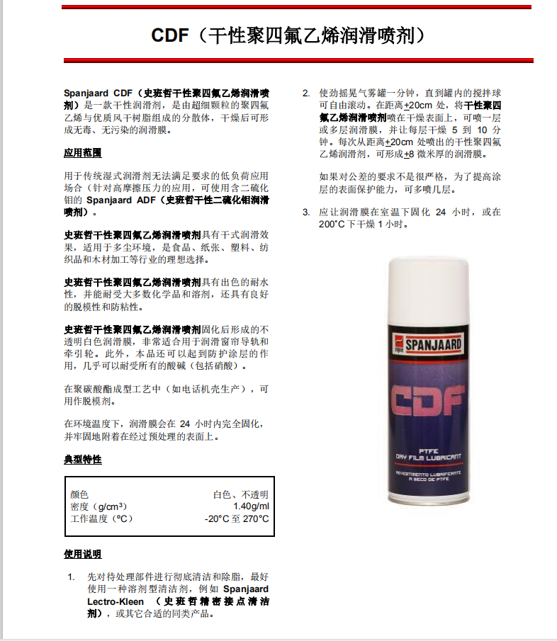 Spanjaard CDF史班哲干性聚四氟乙烯潤(rùn)滑噴劑防靜電干性潤(rùn)滑噴劑