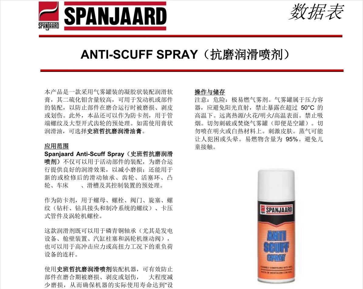 史班哲Anti-Scuff Spray/抗磨潤滑噴劑Spanjaard大型齒輪防磨損